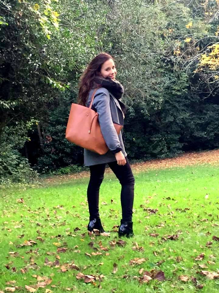 On s’empare d’un grand sac couleur camel pour ajouter de la chaleur à la tenue.