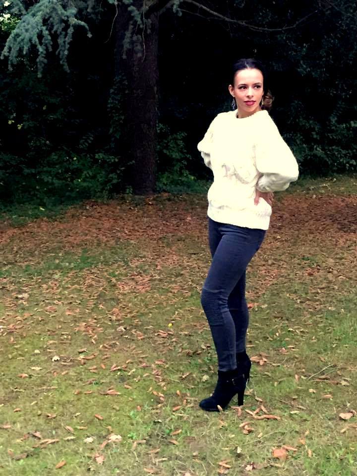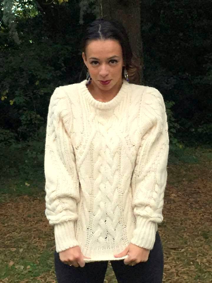 Un gros pull en laine blanc torsadé pour avoir bien chaud.