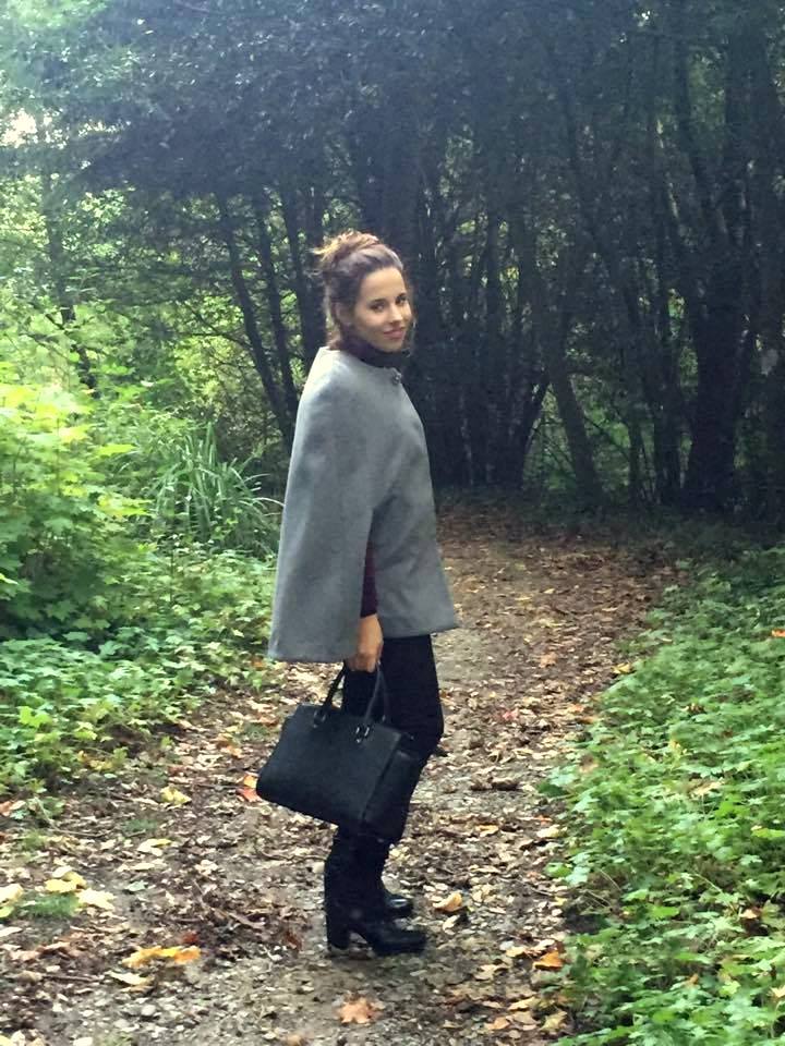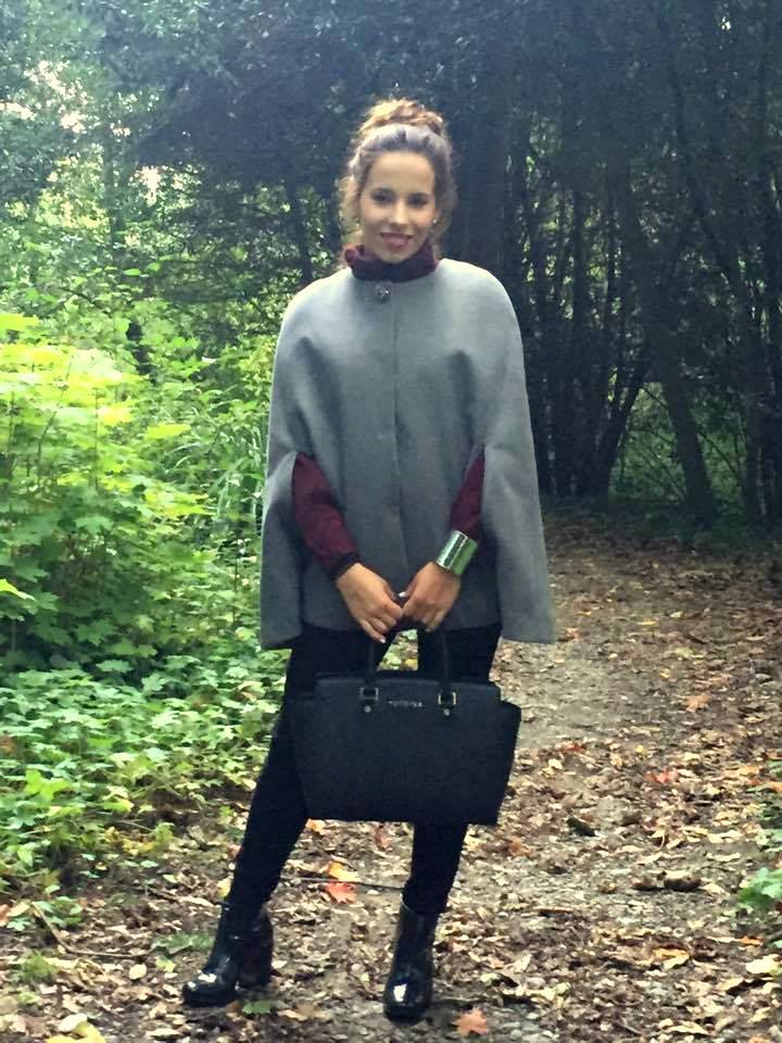 La cape est au top cet automne. On l’associe à un chignon de danseuse pour un look élégant. On y ajoute un sac de dame.