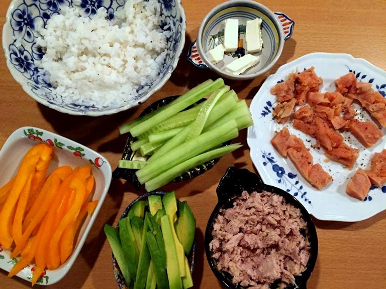 Entourer de film alimentaire le set en bambou pour que la feuille d’algue ne colle pas dessus.
