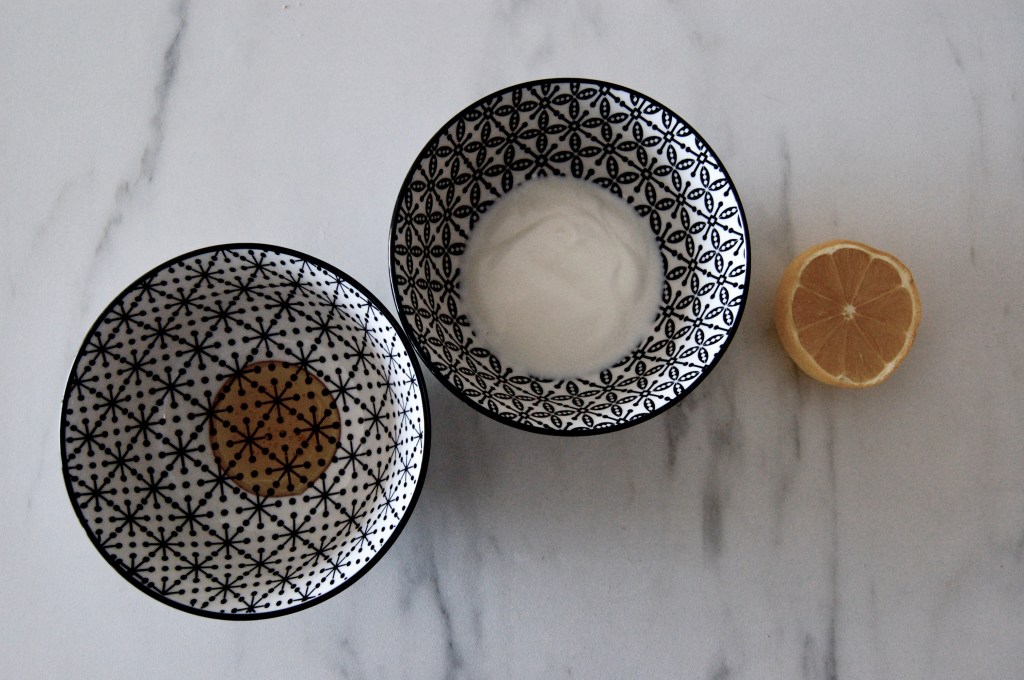On commence par un gommage (très) doux, pour cela, il vous faut : du Yaourt, du Miel et un 1/2 Citron.