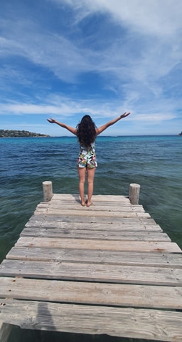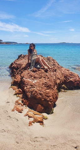 Le dimanche matin, le temps était juste magnifique, nous en avons profité pour aller sur la superbe plage de Palombaggia. Une des plus jolies de Corse, qui est, en juillet/août, bondée, alors qu’en mai, on ne l’avait que pour nous et quel bonheur ! Un sable blanc, des roches terra cota et une mer transparente, splendide ! Bien entendu, début Mai (cause du Cov*d), les restaurants n’étaient pas ouverts, nous avons déjeuner dans notre logement. L’après-midi direction Santa Giulia, avec ce fameux Ponton (so instagrammable) . Jolie plage également mais j’avoue avoir une préférence pour la première.